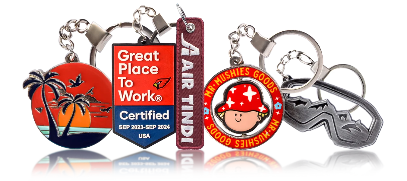 Keychains Custom keychains that last. Designed with vibrant colors, unique shapes, and durable materials. Get Started Keychains Options Embroidered, Woven, Printed From classic “First in Flight” to cut-to-shape designs, we offer a wide range of high-quality keychains, delivered in just 2-3 weeks. Submit Your Image Leather Our custom leather keychains boast a rich, natural texture with several different customization options: embossed, debossed, and printed. Submit Your Image Metal, Engraved & Enamel Our custom metal keychains offer a touch of elegance and come in a wide variety of finishes to suit your style. Submit Your Image